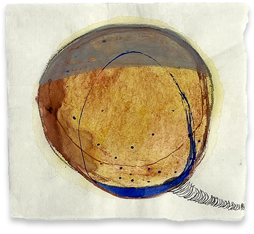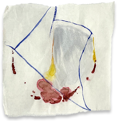 In mijn beeldende werk onderzoek ik die tussenruimte. Dat kan zijn in materiele zin, zoals door het gebruik van een ruimte’steen’ om kleur te geven aan inkt. Of in conceptuele zin, bijvoorbeeld in thematiek die bestaat tussen denkbeeldigheid en realiteit.