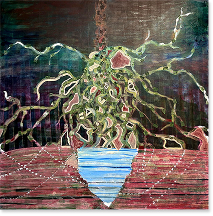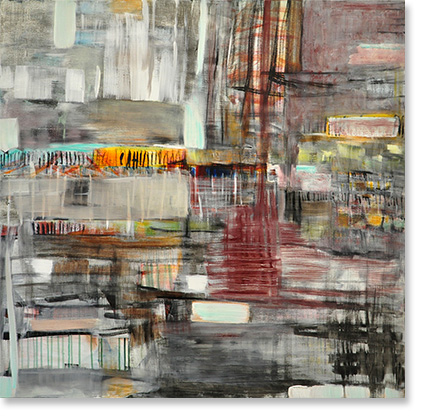 Schilderen is als weven. Vormen, vlakken en lijnen schuiven in en over elkaar.