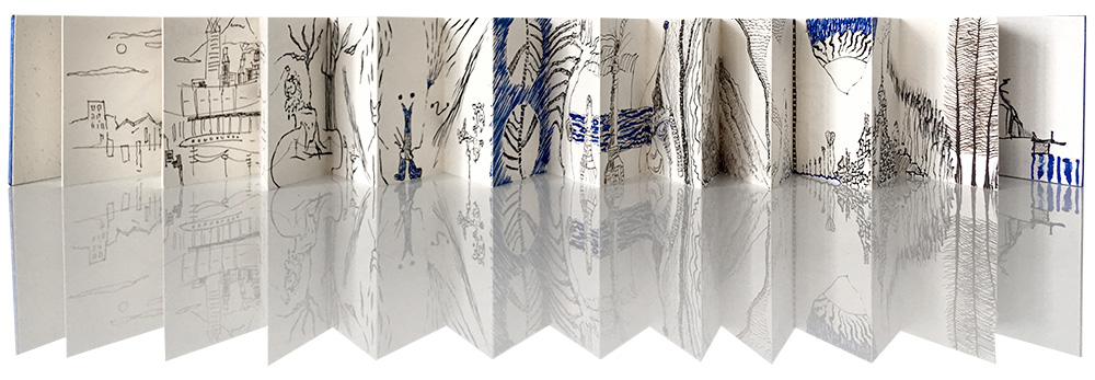 Leporello’s en boeken met tekeningen van toevalligheden die eigenlijk niet bestaan.