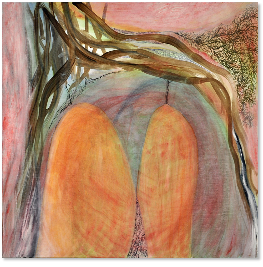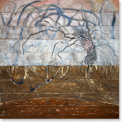 inkt en olieverf op doek