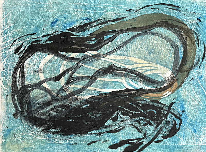 monotype in olieverf op stof